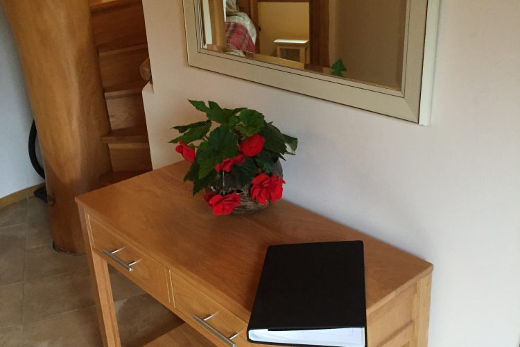 - Oak staircase spiralling around the central oak tree to mezzanine gallery, where you can chill and read or work at a desk area overlooking the hills.